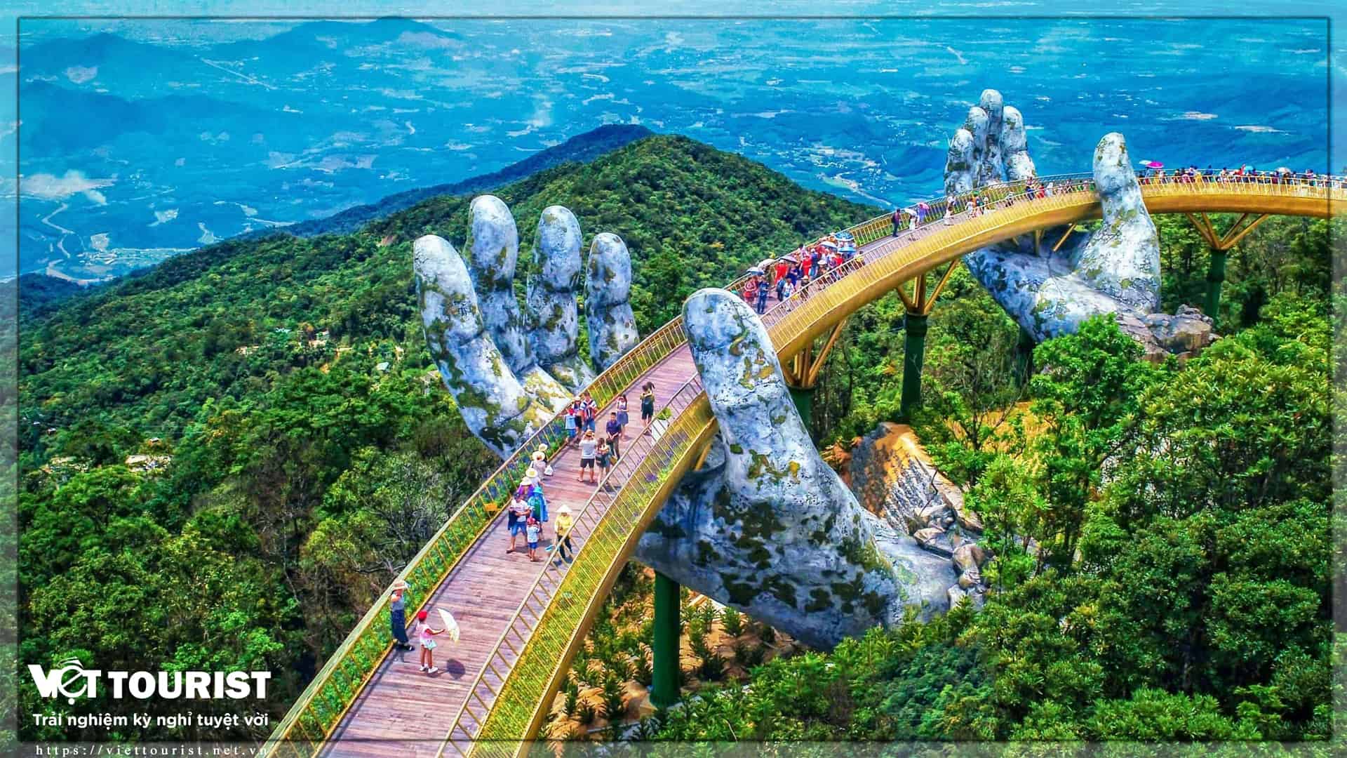 ✔ Bà Nà Hills – Cầu Vàng: Chiêm ngưỡng khung cảnh thiên nhiên ngoạn mục, lưu lại những bức ảnh ấn tượng tại Cầu Bàn Tay Vàng giữa trời mây.